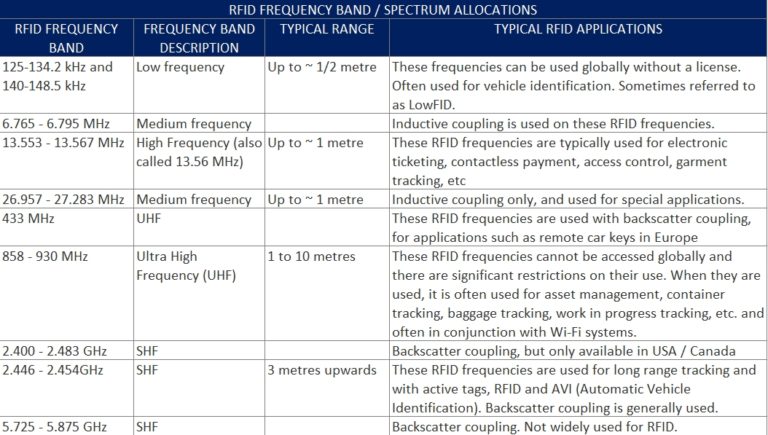 Sistemlerin kullanabileceği birkaç RFID frekansı veya RFID frekans bandı vardır. Dünyada kullanılan toplam dört farklı RFID frekans bandı veya RFID frekansı var.